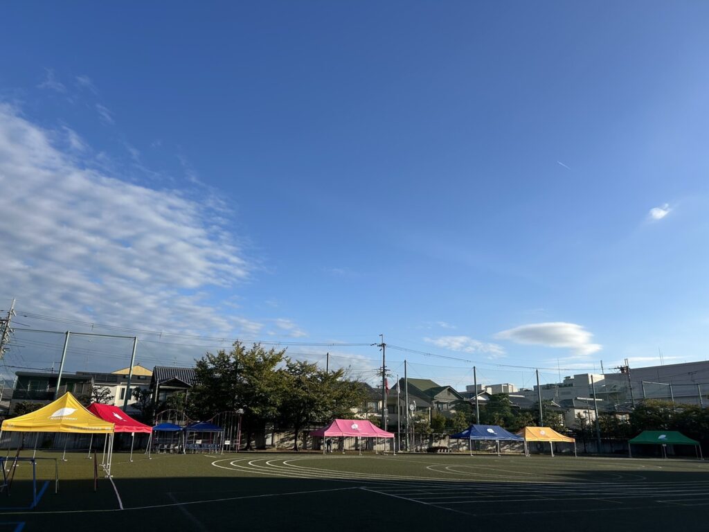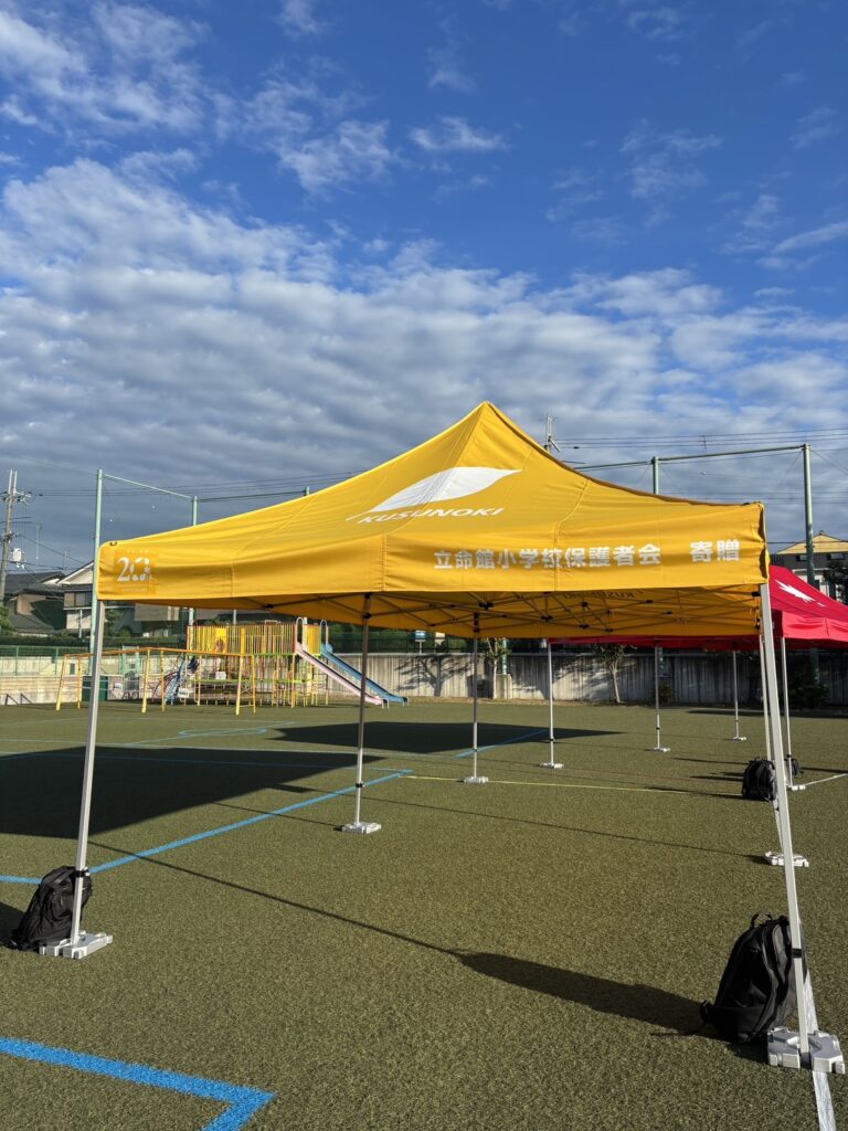 お知らせ TOP ニュース一覧 保護者会よりハウスカラーの記念テントを寄贈しました 2025.10.10 お知らせ 活動報告 保護者会よりハウスカラーの記念テントを寄贈しました 立命館小学校の開校20周年を記念し、保護者会よりハウスカラーの記念テントを寄贈いたしました。 また、2024年度卒業生からも卒業記念品として樫ハウスカラーのテントの寄贈をいただいております。鮮やかな色のテントは、子どもたちの活動や学校行事を彩るとともに、これからの未来を支えるシンボルとして大切に使われます。 青空の下、立命館カラーが並ぶ風景に、20年の歩みとこれからの希望を感じます。