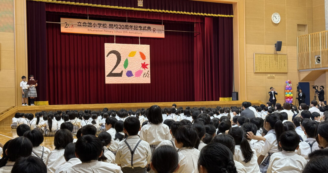 挑戦テーマは「折り紙で作った風船の最多展示数」。新児童会を中心に企画が進められ、20周年記念ロゴを折り紙風船で描くモザイク画を制作することになりました。
